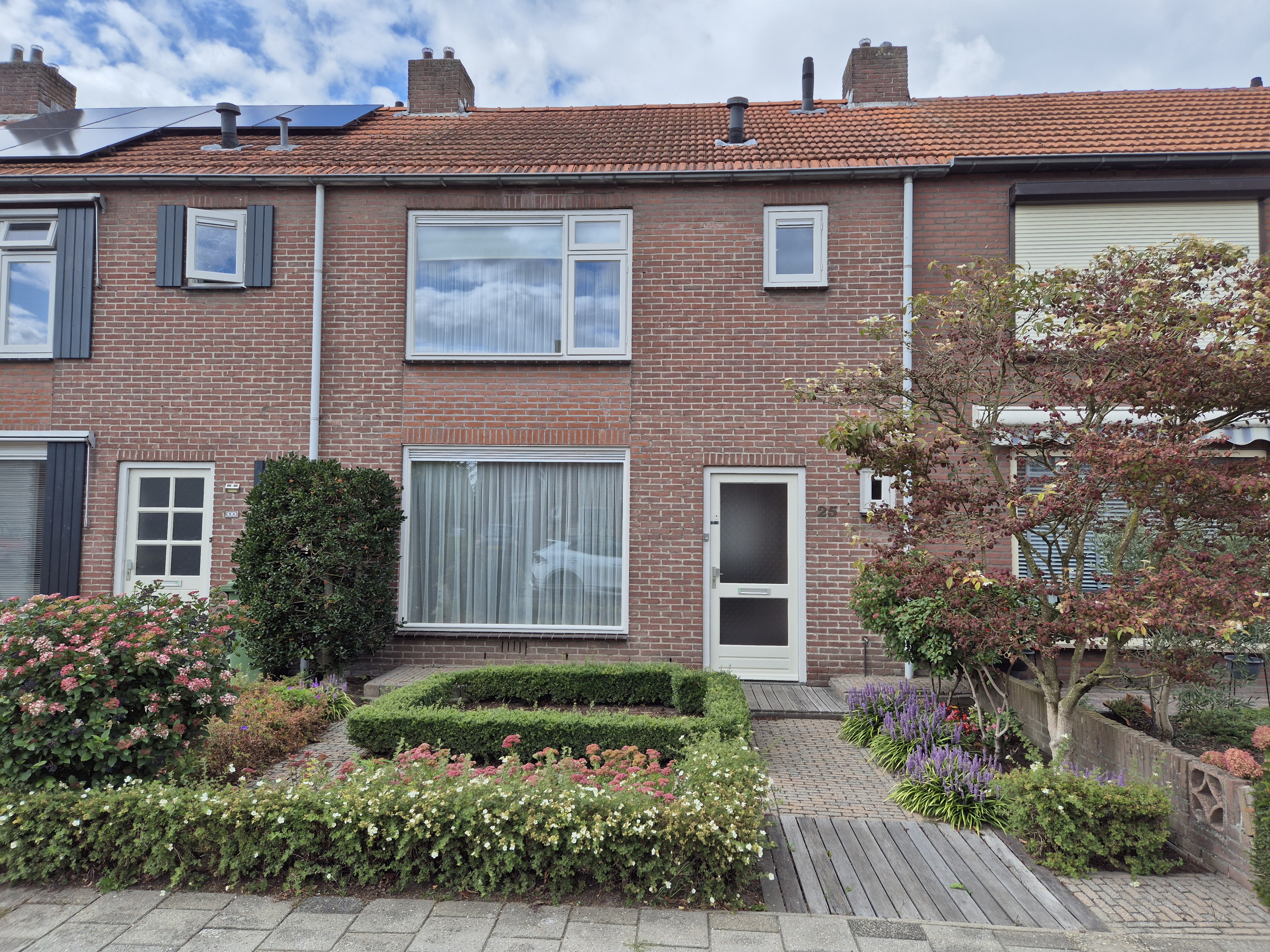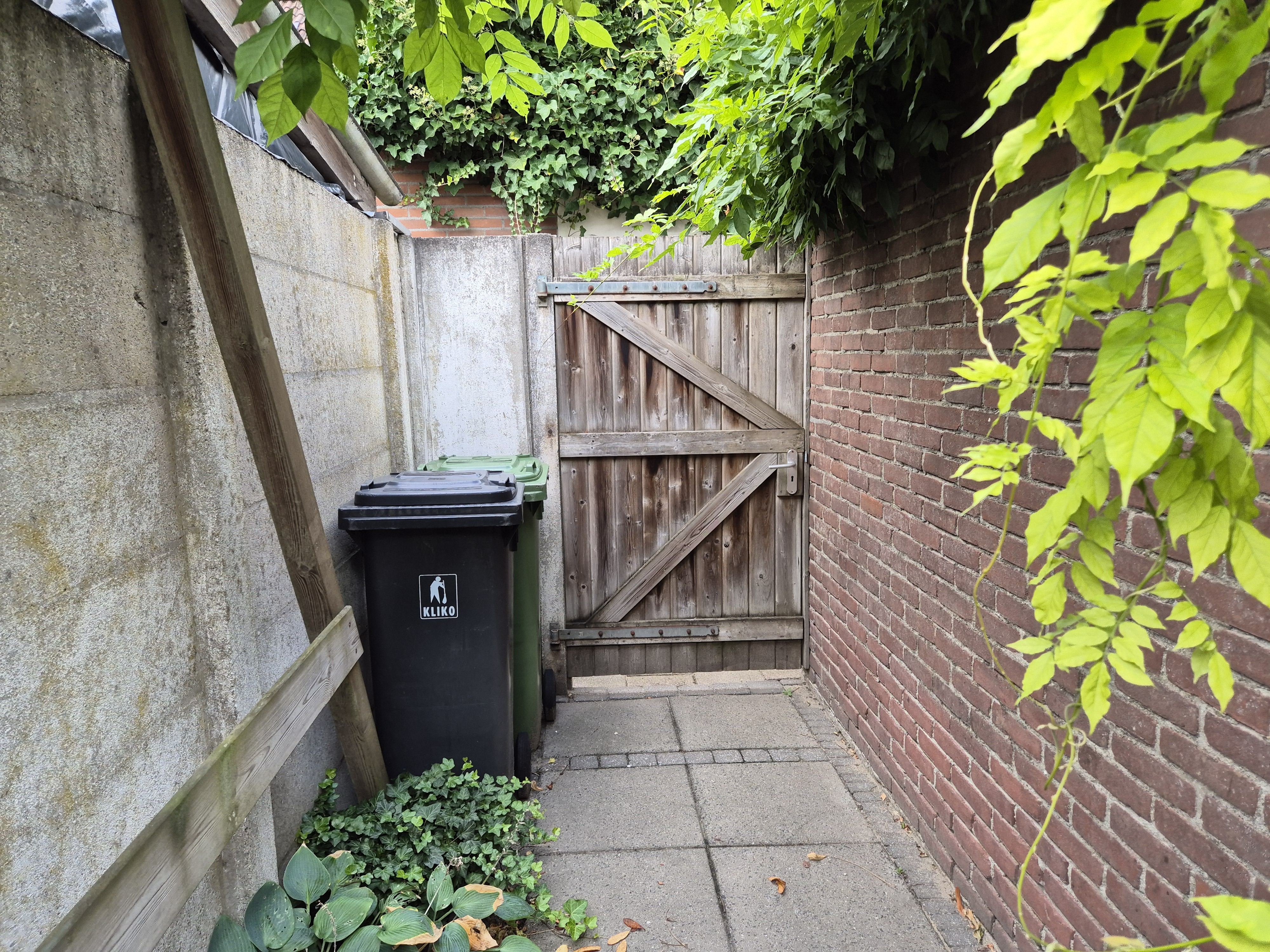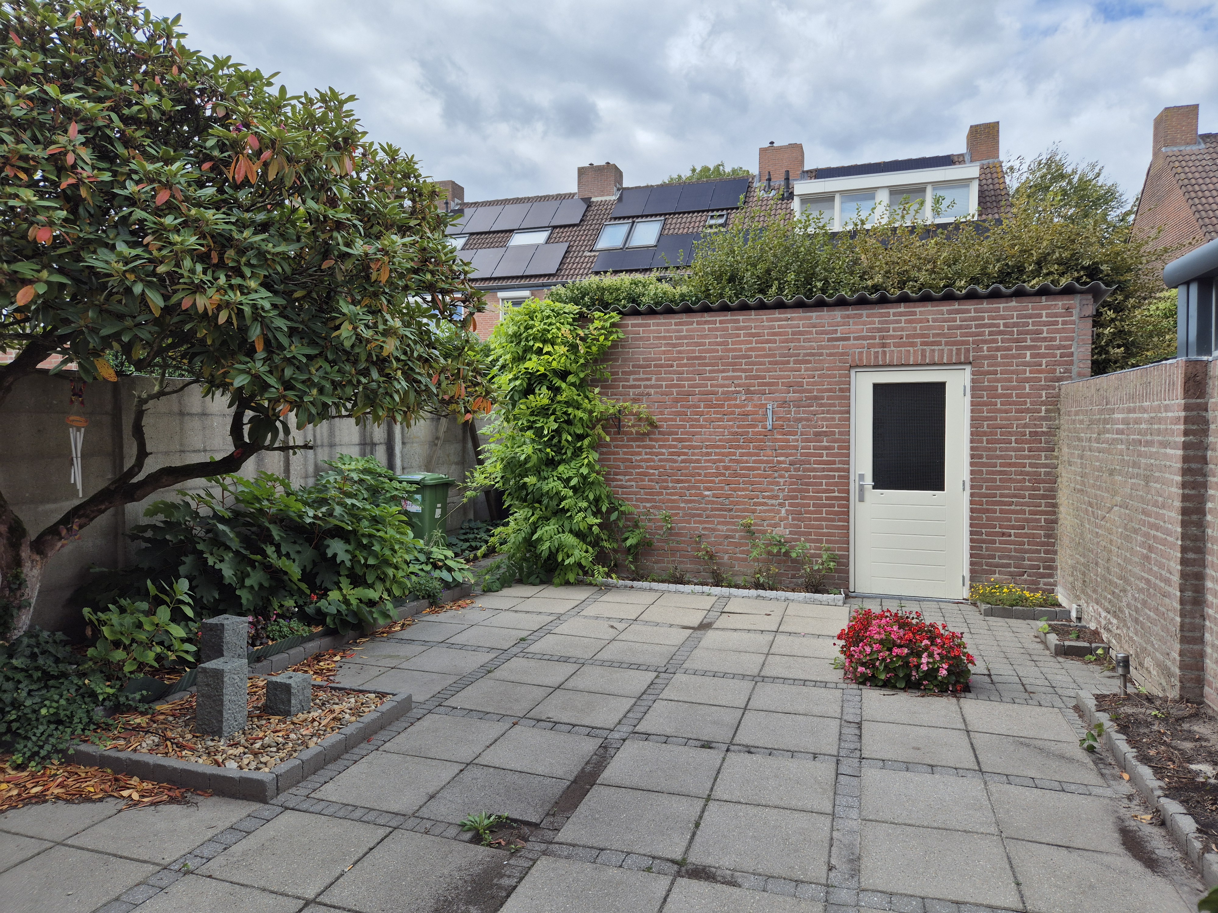 - mooie achtertuin, grotendeels voorzien van bestrating, plantenborders, een achterom en een berging voorzien van elektra