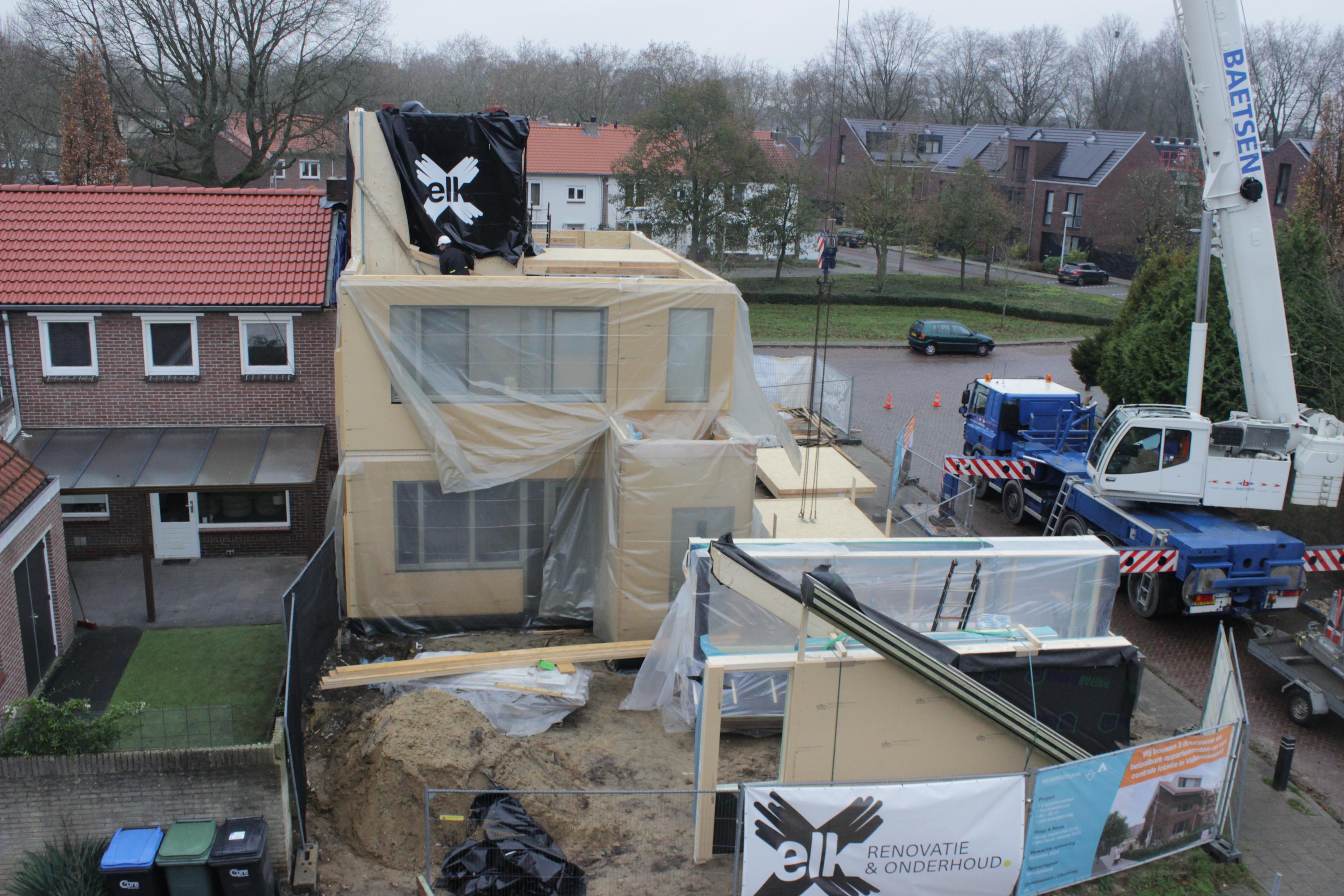 We werken met een prefab-houtskeletbouw. Dat wil zeggen dat woningen grotendeels in de fabriek worden gemaakt en op de bouwplaats in elkaar worden gezet.